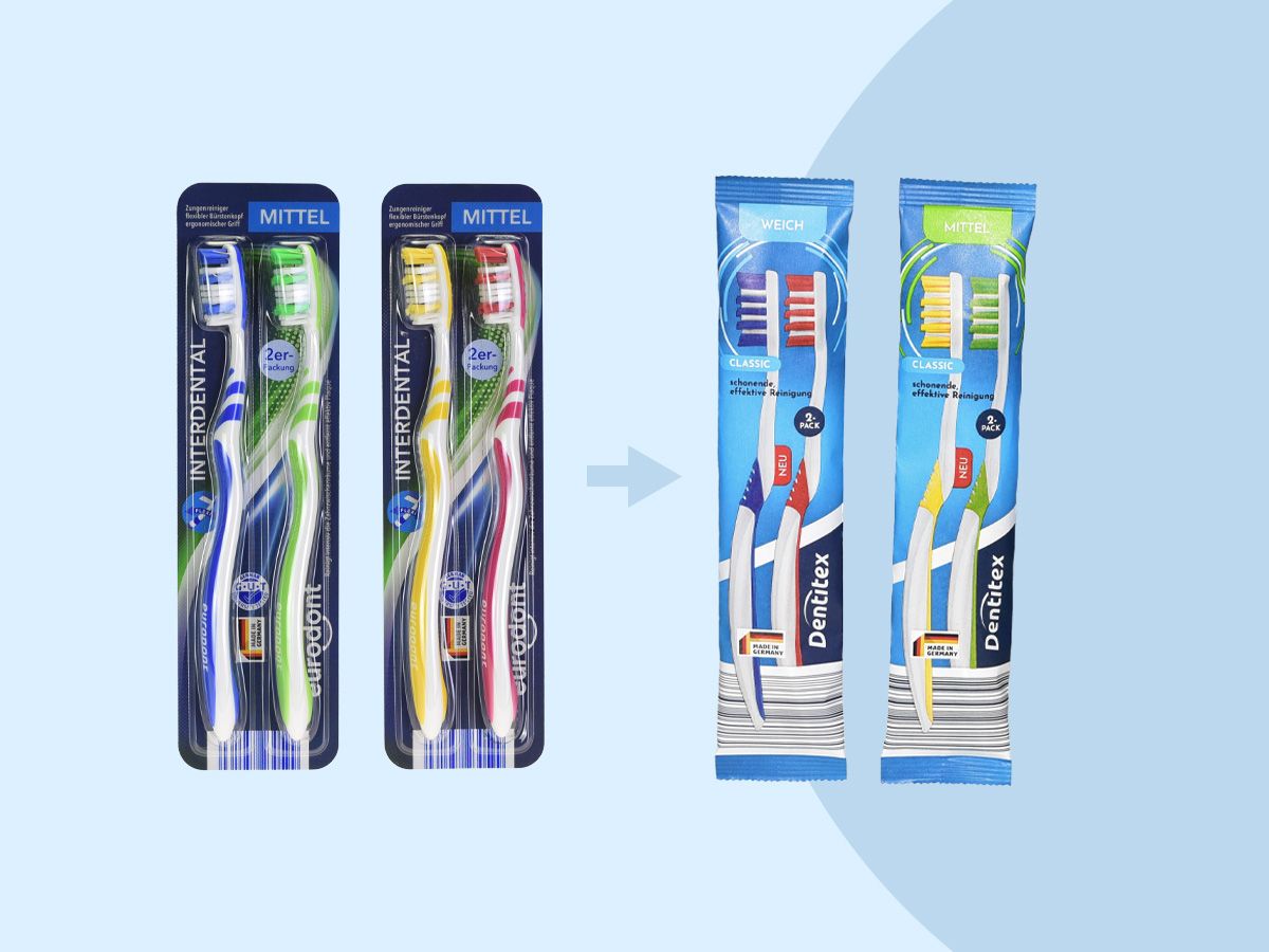 Traditional toothbrush packaging often combines plastic and cardboard, making it difficult to recycle and frustrating to open. To tackle these issues, the ALDI SOUTH Group has moved to fully paper-based packaging for its own-brand kids and basic toothbrushes — a win-win for both the environment and its customers.